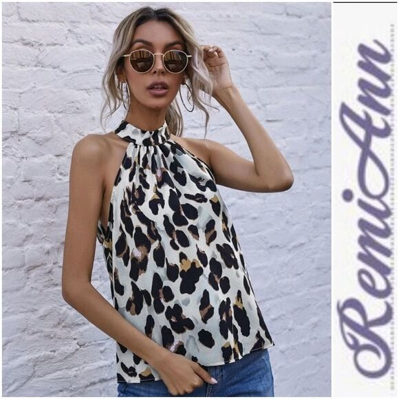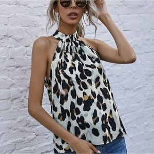 Keyhole Back All Over Print Halter Top