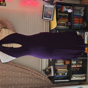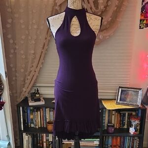 hi low ruffle hem (ruffle is coming off in one part but can easily be fixed with a machine). stretchy and soft rayon. one size fits most from Umbalove, a lovely dark purple color. ties in the back with cute keyhole detail on both front and back. extremely flattering. no other rips, no stains, no pilling. very good pre-loved condition. extra fun to dance in! 💃 🫠