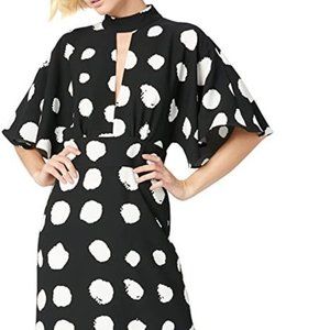 Women's TRUTH & FABLE Keyhole Maxi Evening Dress with Side Slits. Polk-a-dot, black and white. 100% Polyester. Button and Zip closure