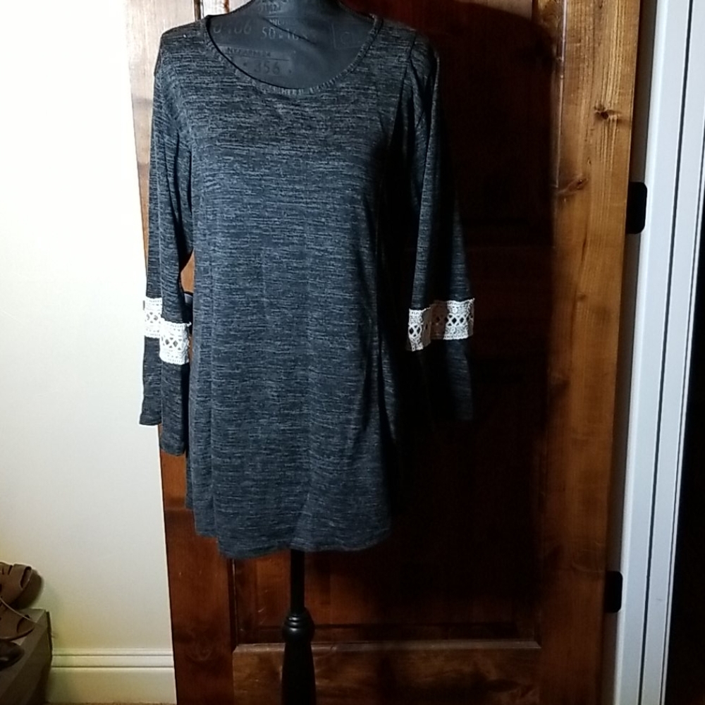 Heather gray tunic with bell sleeves. Keyhole with button for closure. Very good condition