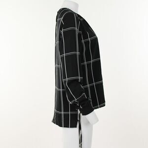 Check out the MELO top to update your look. With a large checked pattern, slightly oversized fit, and dipped hem, wear it to elevate plain jeans, or dress up by tucking it into a MIDI skirt. Ted Baker size is 3 which translates to 8/10 US