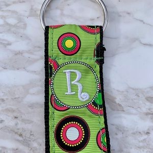 New without tags keyring/clip with initial R. Measures approx 8”. Bundle and save.