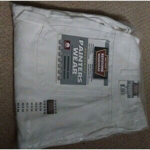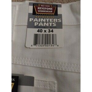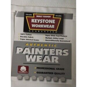 The Keystone Painter Pants VTG Workwear in white are designed for painters in the construction industry. Made of cotton, these wide tool pockets pants are in size 40W 34L and suitable for both men and women. The brand Keystone ensures quality and durability for this specialty work clothing, providing a comfortable and practical option for those in need of a durable and functional pant for their job.