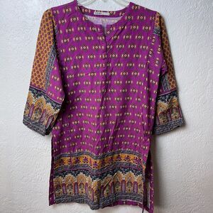 Khaadi Pakistani Cotton Pink Orange Design Tunic Size 12 Boho Traditional Floral