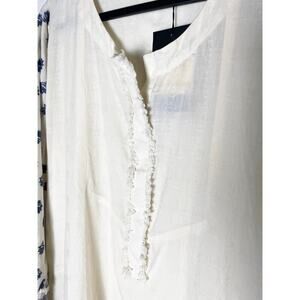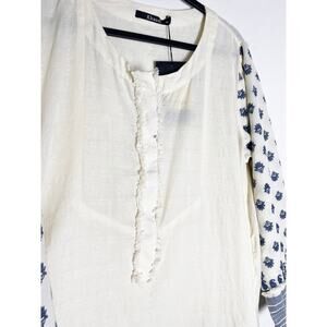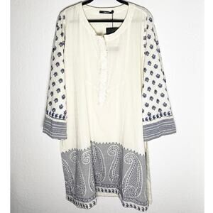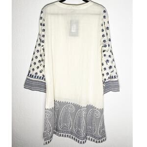 Khaadi Women's 100% Cotton Kurta Beige Blue Paisley Trim Casual Lightweight Oversized NWT