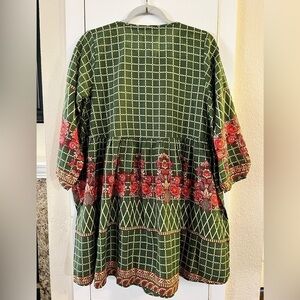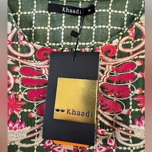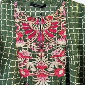 Khaadi Womens Green Check Embroidered Floral Kurta Blouse Size 10