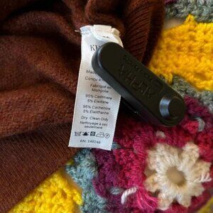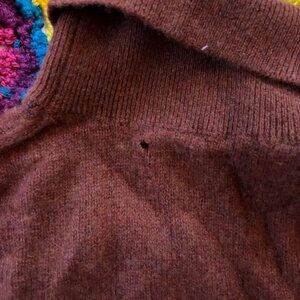 PLEASE SEE PHOTOS small hole on the back of the neck, easily fixed. Also, security tag is still in the tag at the bottom of the sweater but can be cut off without damaging the sweater.