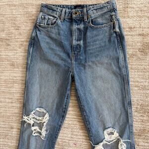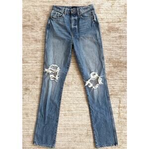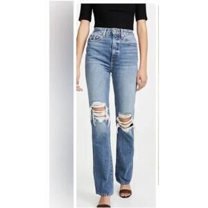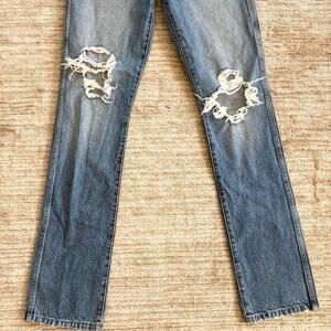 Khaite Daria Distressed Long Length Straight Leg Jeans Sz 26 34" Inseam TALL