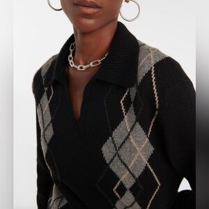 Khaite Hana Jacquard Cashmere Polo Sweater Size Small Academia Chic