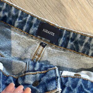 Light wash Distressed knees Straight leg fit Button and zipper closure