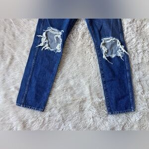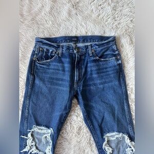 Khaite Kyle Straight Leg Distressed Dark Wash Jeans Size 28