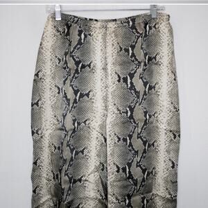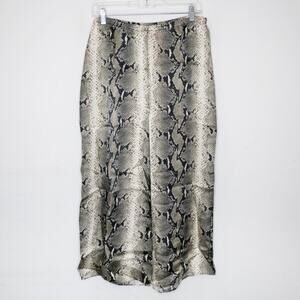 100% Washed Cupro. Cream / Black / Grey neutrals all-over python print. Elasticated waistband. Cropped leg. Current style, retail $980. Size Large.