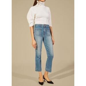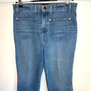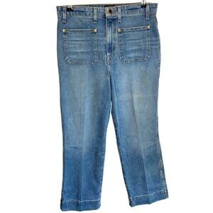 Khaite Raquel Premium Denim Sz 30 Cropped Patch Pocket Jeans Straight Flare