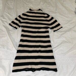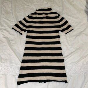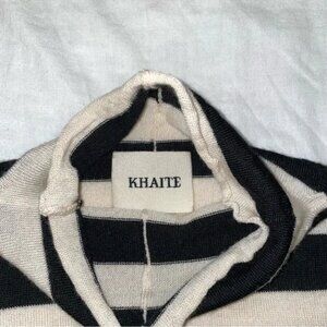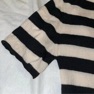 Khaite SMALL Short-Sleeve Striped 100% Wool sweater mock neck lightweight
