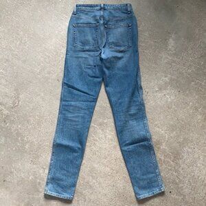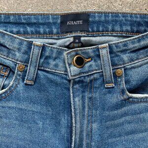 Amazing Khaite Vanessa jeans size 25. Incredible fit but doesn’t fit me anymore unfortunately. This wash is called “medium crease”. Very slight pull at the back but not apparent when wearing. Please see pics.