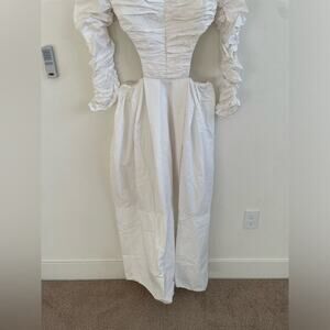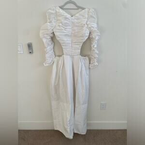 Khaite White Rosaline ruched open back crystal embellished cotton twill dress 8