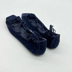 Khaite Women’s Sz 37 US 6.5 Blue Suede Lace Up Gladiator Fashion Flat Sandals