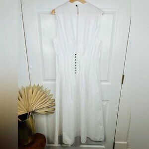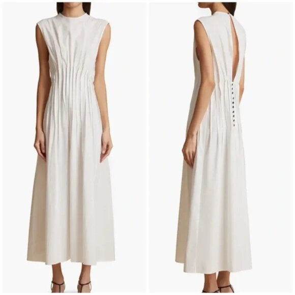 Khaite Women's White Wes Pleated Cotton Poplin Dress Size 12 Sleeveless