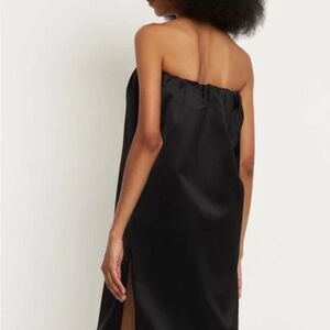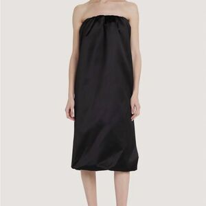 Just add slides or mules and you are good to go. Seen on the runway, this unstructured dress is simmered in a soft sheen and still delivers notable details like a bubble hem and a side slit. Strapless 56% cotton, 44% viscose Dry Clean Made in Turkey Women's Designer Clothing