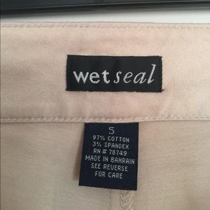 Cute khaki capris from wet seal. No front or back pockets. More on the dressy side. Size says 5 but they are more like a 4.