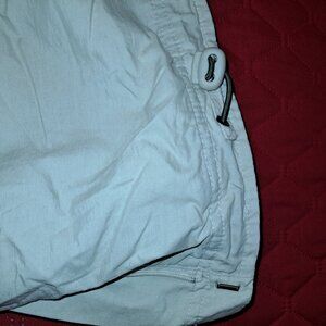Stay stylish and versatile with these wide-leg parachute pants in a classic khaki color. Featuring a unique button-up design, these pants easily transform from full-length to capri style, offering two looks in one. The drawstring hem provides a customizable fit, allowing you to adjust the silhouette to suit your mood or activity. Made from lightweight, breathable fabric, these pants are perfect for casual outings, travel, or outdoor adventures. With a relaxed fit and functional design, they combine comfort and practicality with effortless style. Inseam 29 inner thigh from crotch to ankle, waist 48, hips side to side 33.
