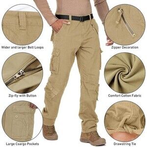 Khaki Cargo Work Pants Ripstop Lightweight BDU SZ 42 with 9 pockets