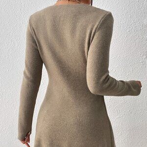 Khaki Casual Preppy Womens Wrap Knot Side Sweater