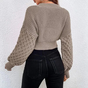 Khaki Casual Women's Cable Knit Drop Shoulder Cardigan