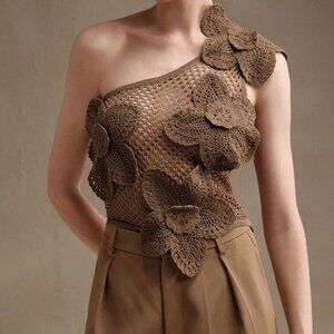 Khaki Casual Women's Casual Crochet 3d Floral Sleeveless Vest