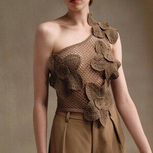 Khaki Casual Women's Casual Crochet 3d Floral Sleeveless Vest