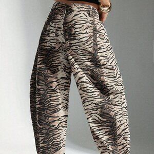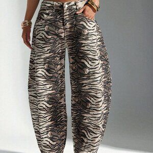 Khaki Casual Women's Distressed Animal Print barrel Jeans pants