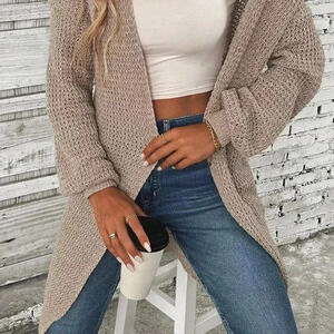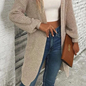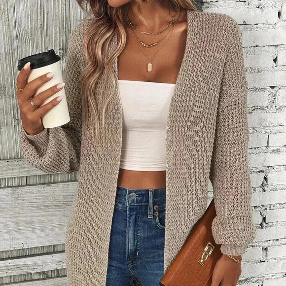 Khaki Casual Women's Drop Shoulder Design Cardigan