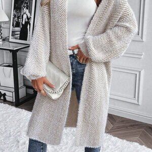 Khaki Casual Womens Drop Shoulder Open Front Cardigan