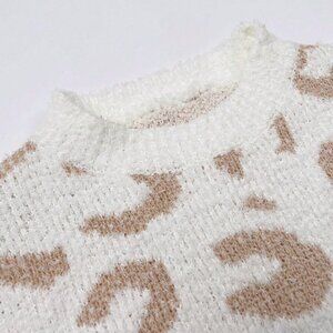 Khaki Casual Women's Leopard Pattern Drop Shoulder Sweater & Drawstring Shorts