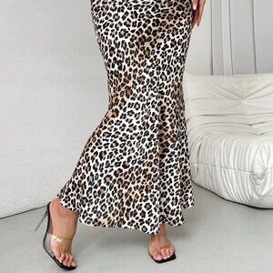 Khaki Casual Women's Leopard Print Holiday Skirt