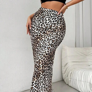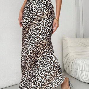 Khaki Casual Women's Leopard Print Holiday Skirt
