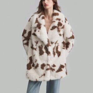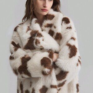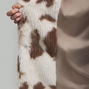 Khaki Casual Womens Leopard Print Oversized Fluffy faux fur Lined Coat
