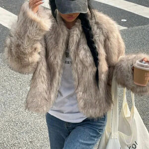 Khaki Casual Women's Long Sleeve Faux Fur Jacket