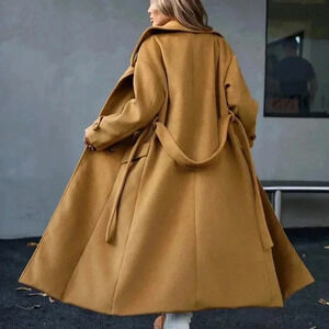 Khaki Casual Women's Oversized Double-Breasted Wool Coat