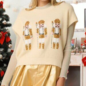 Khaki Casual Women's Sequin Christmas Sparkly Soldier Sweater Vest