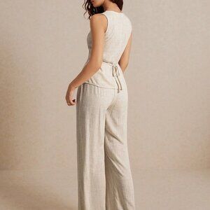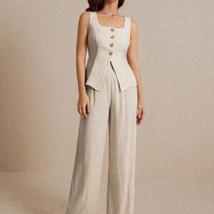 Khaki Casual Women's Summer Linen Color Linen Suit Vest Two-Piece Set