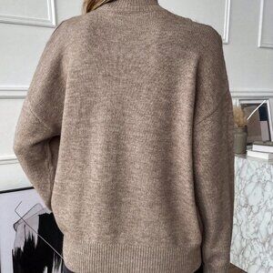 Khaki Casual Womens Turtleneck Cold Shoulder 2 In 1 Sweater