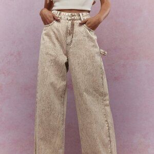 Khaki Casual Women's Washed Folded Hem Straight Leg Jeans