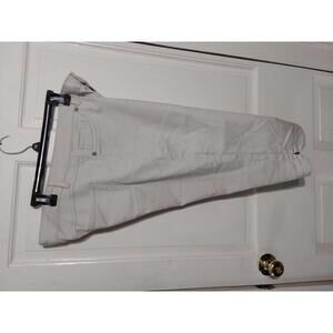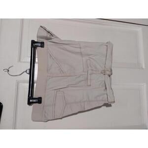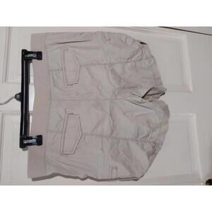 Khaki & Co beige cargo shorts. Size 14. Elastic waist with 2 buttons and zipper. Waist-18" rise-11" inseam up to 6.5" length unbuttoned on bottom-17" velcro pockets, bottoms roll up with a button strap. Excellent condition