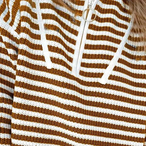 Khaki Cute Women's Boho Cotton Drop Shoulder Oversized Zip Up Pullover Sweater