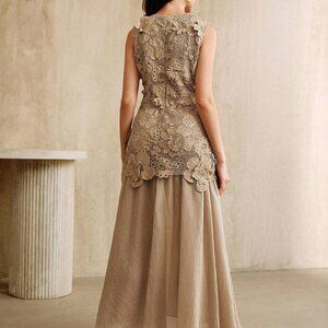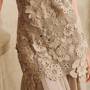 Khaki Elegant Women's Holiday Hollow Flower Patchwork Chiffon Dress