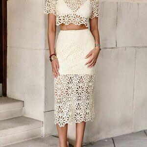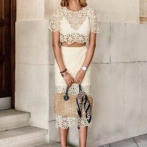 Khaki Elegant Women's Hollow Out Knitted Two-Piece Set