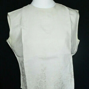 Khaki Linen Floral Flower Embroidered Button Back Tank Top Blouse Vintage Size M