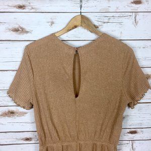 Khaki MakeMeChic Womens Large Casual Lettuce Trim Rib Knit Short Sleeve High Waist Romper