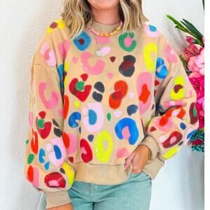 * Stand out with a vibrant multicolor leopard print sweatshirt.